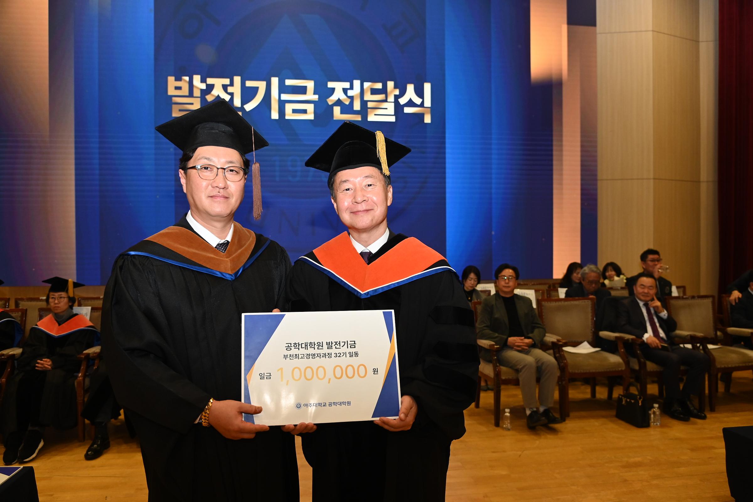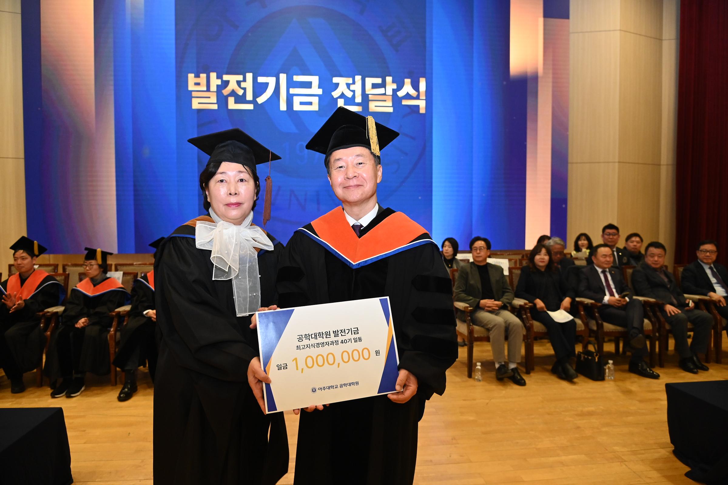 또한 각 과정의 졸업생들은 공학대학원의 교육 수준 향상과 복지 증진을 위해 발전기금을 전달하고, 동문으로서 앞으로도 지속적인 관심과 지원을 이어가겠다는 뜻을 밝혔다.