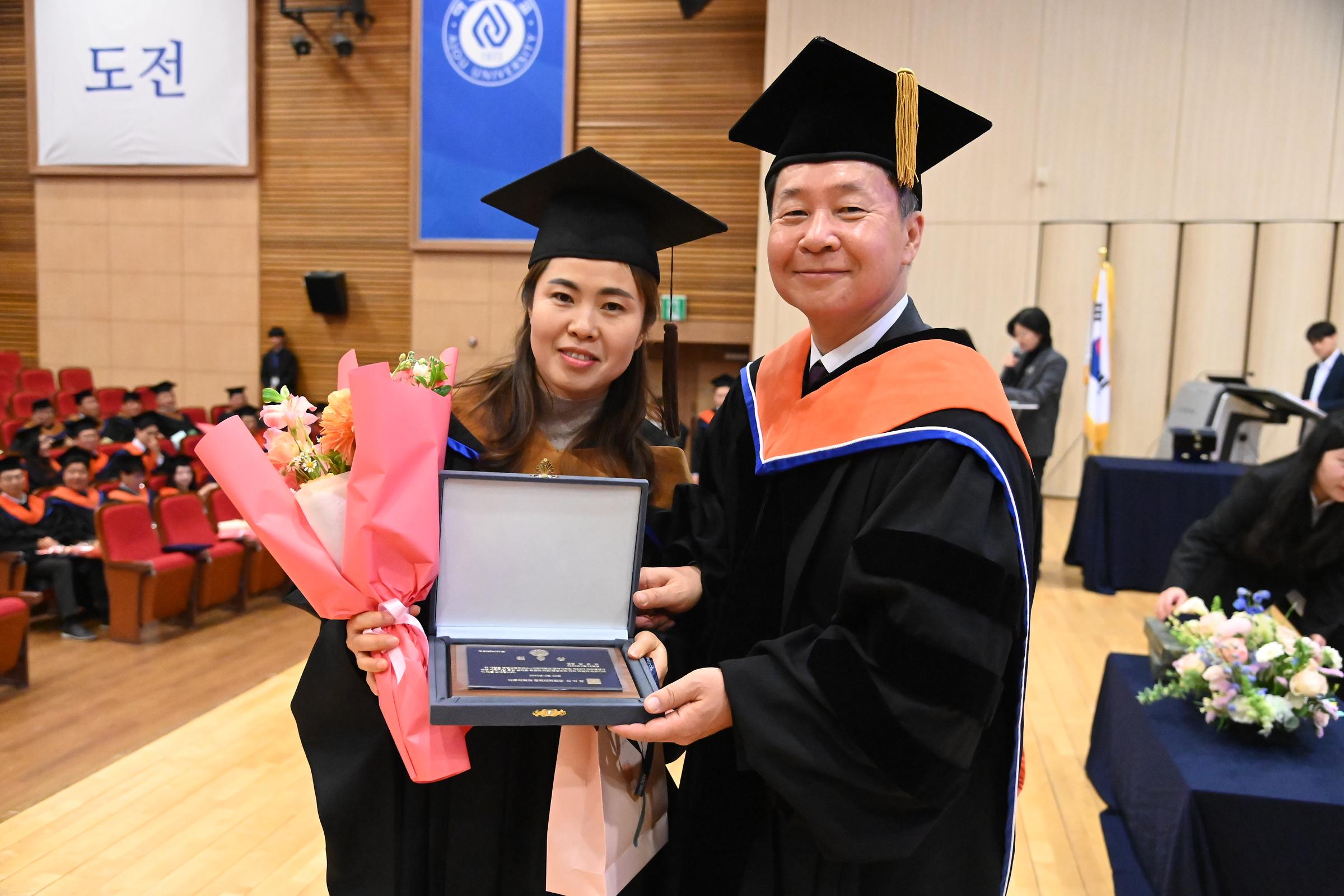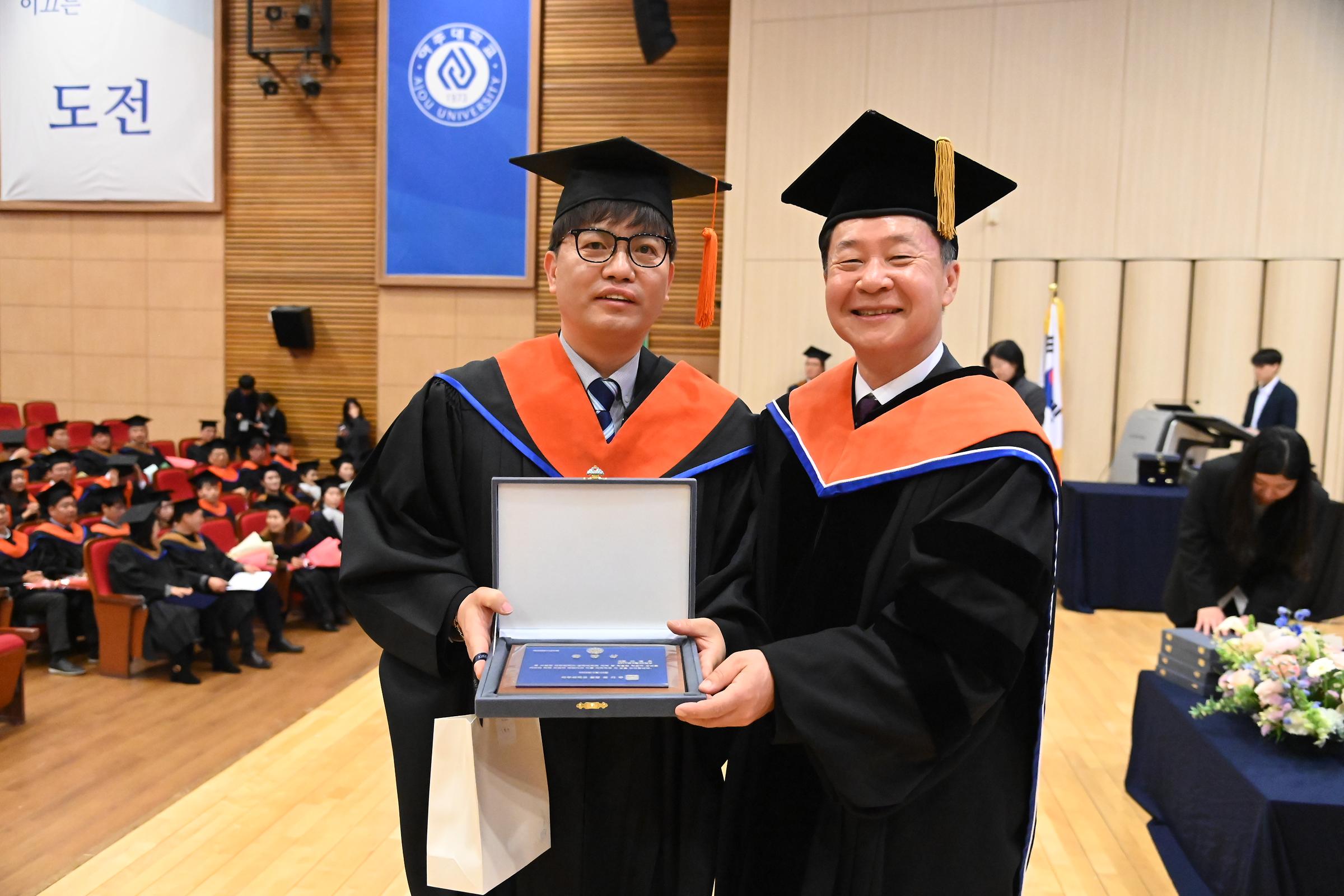 학위수여식은 내빈소개 및 학사보고와 함께 ▲공학대학원장 식사 ▲각 과정 동문회장 축사 ▲학위기 및 수료증서 수여 ▲시상 ▲발전기금 전달 순서로 진행됐다.