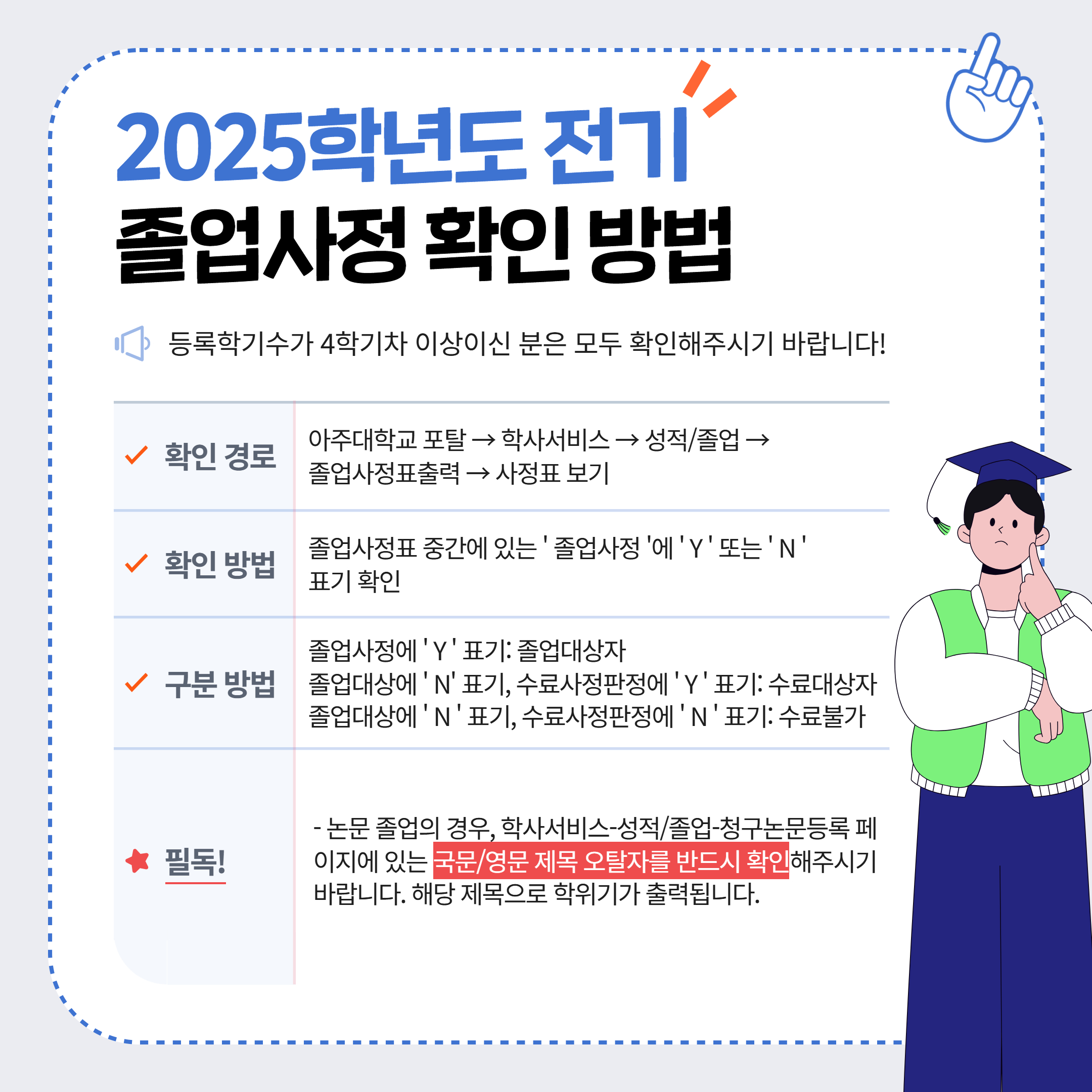 [졸업] 2025 전기(2026.02) 졸업대상자 졸업사정 확인 안내
