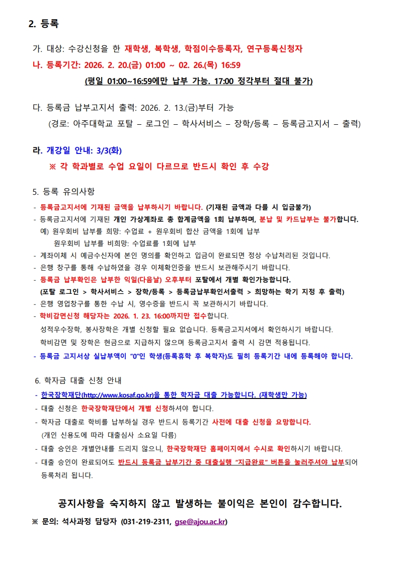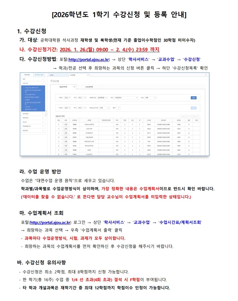 2026-1학기 수강신청 및 등록 안내